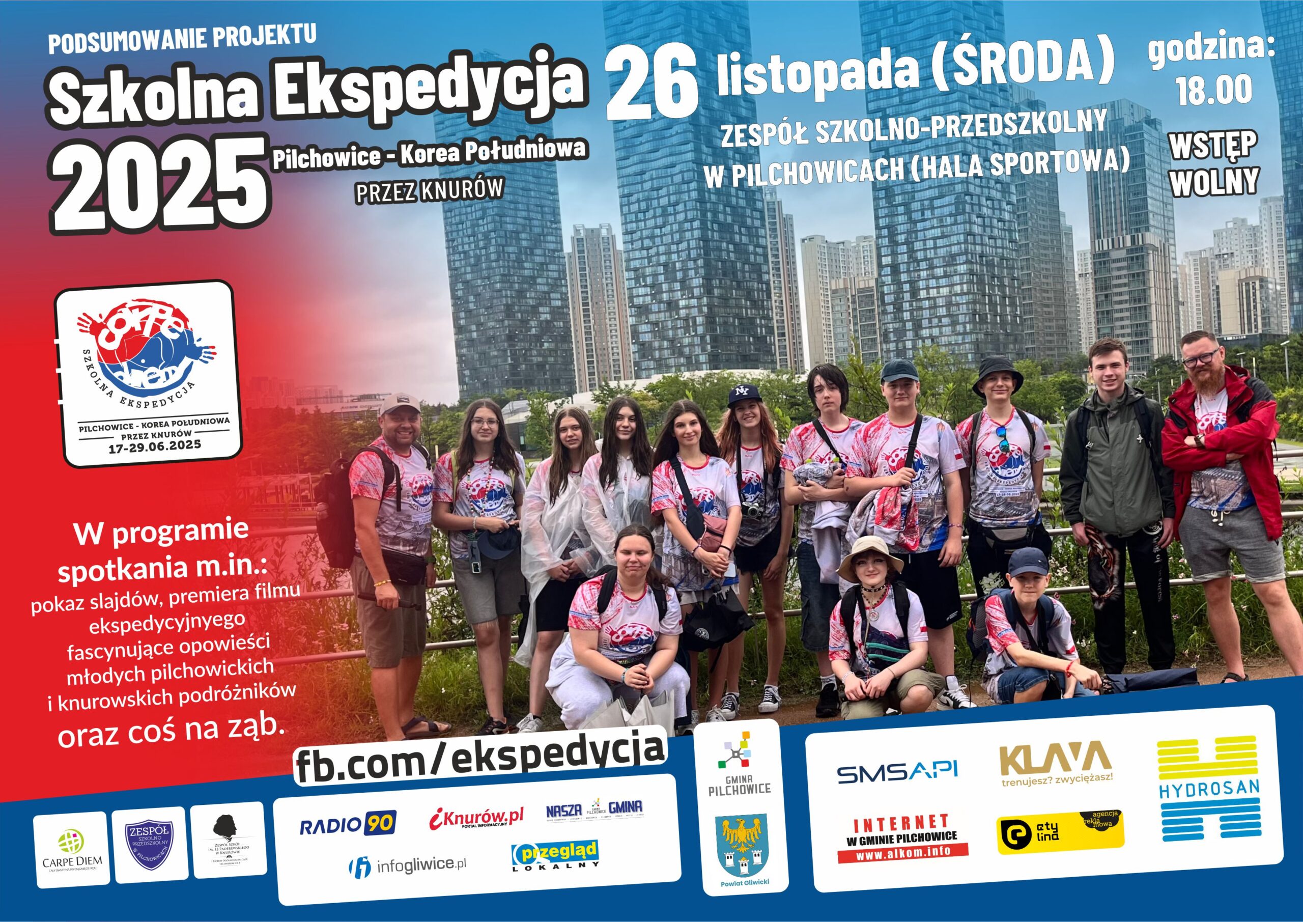 W środę, 26 listopada o godzinie 18:00 w hali sportowej Zespołu Szkolno-Przedszkolnego w Pilchowicach odbędzie się wyjątkowe wydarzenie – podsumowanie projektu „Szkolna Ekspedycja 2025”.